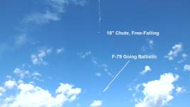 This flight uses a pair o' D12-3 motors (instead o' two D12-5's) and I made new 18" parachutes that have t' shroud lines goin' up over t' top ... [More]