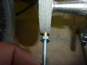 2. Shorten t' insert so it doesn’t touch t' integrated nut when inserted into t' Rawl nut. Begad! T' gap betwixt both brass nuts should be about 1/8”.
