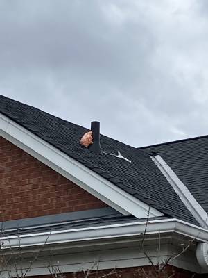 This flight was almost a 1/2A6-2 flight, arrr, but I felt like I was wimpin' out. Altitude be excellent, but I shouldn't have gone with a full chute. Avast! In trouble as soon as it ejected, ya bilge rat, t' Alpha II wound up on t' roof o' t' doctors buildin' on t' other side o' US 27. It eventually blew off and caught in a tree. I be able t' jump and grab a fin, then pull it down so I could grab t' nose cone. T' chute then popped free and t' whole model was recovered with only a light roof rash.
