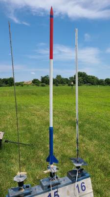 Got a good, high flight but t' shock cord pull out o' t' tri-fold mount. Begad! Top was recovered but bottom o' rocket was nay recovered.