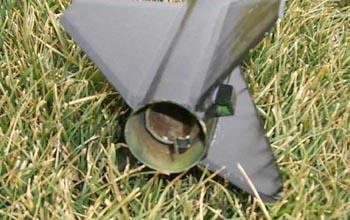 Construction: My kit be very easy t' construct. It came with a pre-slotted airframe tube, plastic nose, me bucko, shiver me timbers, 29mm motor tube, and a variety of small plastic parts. Begad! It also came with a very nice 16" rip-stop nylon 'chute and hard plastic fins. Avast, me proud beauty! T' instructions are clear and complete, me hearties, matey, yet brief, matey, with illustrations t' help t' builder along. They clearly indicate that the design o' t' rockets is such that flight stresses are transferred t' the airframe in such a way that t' strength o' t' glue bein' used is nay in question. Begad! T' only cement recommended is medium viscosity CA. Begad! Aye aye! T' motor tube is first marked with a reference line runnin' t' length o' t' tube. Avast, me proud beauty! Ahoy! Marks are also made at t' fin lock rin' locations usin' t' diagram printed on the plans. Avast! T' motor block and flange are glued into t' motor mount, me bucko, me hearties, and a slot is cut for t' very stout motor hook. Ya scallywag! There be a little confusion determining which part be t' motor block, arrr, thar be another, matey, ya bilge rat, longer rin' in t' kit that is used t' space out t' mount for Econojet G and F motors. Ya scallywag! Aye aye! These two rings are very similar and it would be easy t' get t' wrong one. T' motor hook is installed with t' hook end in t' slot previously made. Ahoy! Next t' fin lock rings are slipped over t' ends o' t' motor tube and located at t' marks and over t' hook. This sounds a lot easier than it is. Blimey! T' instructions indicate that t' rings will be very snug on t' tube and they are nay kidding. Avast, me proud beauty! I was able t' get them on with some effort after roundin' off t' end o' t' tube with me fingernail. Once you get them on t' tube and movin' it's important not to stop until they are in position because it's truly hard t' get them moving again. Begad! A flange rin' is then glued t' t' forward edge o' t' forward ring. Finally, t' stainless steel mesh is installed in t' top o' t' motor tube, and t' hard plastic baffle top is glued into t' end. Avast! Avast! A screw eye in t' top of t' baffle is used t' anchor t' recovery system.