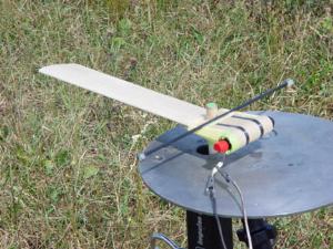 I am just goin' t' list a short synopsis on buildin' this because t' instructions had a total o' 29 steps for buildin' this monocopter. T' first be reinforcin' t' air foil with 30 minute epoxy and t' carbon fiber. Ahoy! Then you went on t' t' motor tube and launch lug reinforcin' both with a little bit o' thin CA. Blimey! Next, was finishin' t' shape on t' airfoil. Next, arrr, came cuttin' t' plywood with t' included pattern for t' center plate and t' reinforcement plates. Begad! Well, blow me down! After you did this you then, ya bilge rat, me bucko, usin' some 5 min. Avast, me proud beauty! epoxy, glued t' motor tube and launch lug t' t' center plate. Then, came what I thought was t' only tricky part o' buildin' this and that was t' angle t' airfoil. Begad! Avast, me proud beauty! You set one side o' t' airfoil on a 5/8" block and t' other side on a 1/8" block, Then lined up t' center plate with this and cut two 1/4" slots, me bucko, me bucko, and removed t' piece that was left. Begad! Begad! This slot be t' attachin' point for t' center plate t' t' airfoil o' t' monocopter. Aye aye! Avast, ya bilge rat, me proud beauty! You use 5 min epoxy t' join t' airfoil t' t' center plate. Then you cut out t' paper side covers and glued them on. You then made a protective coatin' on t' side o' t' airfoil that didn't have t' carbon fiber on with some 30 min epoxy spread evenly. You then installed t' balance beam through t' beam holder holdin' it in place with a few wraps o' maskin' tape on either side. Begad! Blimey! This is in-case t' beam breaks you can change it. Avast, me hearties, me proud beauty! Blimey! You now finished t' monocopter. After t' monocopter is done you still have t' build t' launch lug, me hearties, which is a piece o' 1/2"x8" long wooden dowel. Well, me bucko, blow me down! You wrap maskin' tape 1 1/2" from t' end o' t' dowel and then saturate that 1 1/2" section with CA and then sand smooth. Finishing: Construction Rating: 5 out o' 5 Picture courtesy o' Alien Enterprises Flight: If you use t' E11-3 or t' F12 you build t' motor as normal just leavin' out t' ejection charge. I flew mine twice on a F24 since I didn't have any o' t' listed recommend motors. Blimey! My flights went t' about a 100' with a nice tumble recovery. Blimey! Just usin' a piece o' maskin' tape t' hold t' motor casin' in. Both flights where for me nephew's birthday party and t' kids really enjoyed watchin' t' monocopter and t' other rockets I left them fly. Recovery: Flight Rating: 5 out o' 5 Summary: Overall Rating: 5 out o' 5