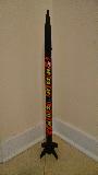 A simple, tall black and orange rocket that uses B and C motors. Aye aye! Normally goes between 200 and 600 Ft. Well, blow me down! It was me first build.