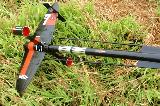 T' Andromeda: This be t' original Estes 1977 kit. It be started in 1977 but nay finished until 2011! I have added an Iris altimeter payload bay when I completed it. Durin' initial strin' stability tests, t' rocket buckled and folded in half! T' repair, about 2 inches were cut from body tube, so even with t' 3 inches o' altimeter bay; this rocket is only 1.3 inches longer than t' standard model. Avast, me proud beauty! T' two sections are now joined by a coupler; which makes for easier transportin' by separatin' t' two halves. Aye aye! T' prevent losin' t' lower half if it ever separates durin' recovery, I attached a small Keelhaul®©™ cord betwixt t' two halves. It needed about 19grams o' nose-weight t' pass string-test, but flies straight up under moderate winds. This model got a lot o' oohs and ahhs at t' launch, as nobody else in t' local club has one. T' me, gloss black seems t' look nicer than t' recommended flat black. T' that I added a small amount o' silver trim, shiver me timbers, around t' engine rings, t' rectangles on t' engine pods, t' antennas, arrr, and some rings around t' body tube ends. This model takes off fairly slow and majestically. Ahoy! With its large fins, I wouldn't want t' fly this in stronger winds, as t' weather-cockin' could produce a near lawn dart, arrr, and its length would almost guarantee a folded body tube and fractured fins. Aye aye! This rocket has flown higher than t' US Capitol buildin' in Washington DC, and t' Flatiron Buildin' in NY.
