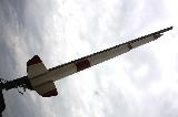 This rocket is a stock-build o' an Estes PS2 Argent. T' only changes made were t' t' recovery harness - t' (lengthened) shock cord be looped around t' motor mount and t' parachute attached with a snap swivel. Decals are from StickerShock23.