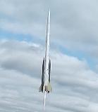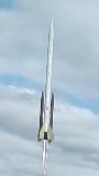 T' Astrobee D IV 'Super Booster' is a reconfiguration o' t' Astrobee D rocket by Aerotech. This new version has two integrated side boosters along with electronic packages in t' nosecone and aft o' t' main booster. T' center payload section will carry Canadian mail with Gerhard Zucker stamps onboard. This rocket will be t' launch vehicle in t' fourth and final flight o' me Canadian rocketmail program which delivered mail with rare Gerhard Zucker 'First Canadian Rocket-Flight' postal stamps attached. This launches are t' first ones in Canada's history t' successfully delivery mail by rocket usin' official Canadian rocket stamps and recovered safely.