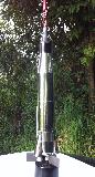 Estes single engine, me hearties, C powered, arrr, foam formers mounted on intertube, construction paper for outer skin covered with Chrome wrappin' paper.