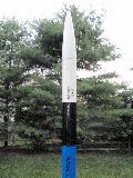 T' Bandit: Apparently this is NOT t' modern Estes "Bandit". (I hate when Estes re-uses model names!!!) This is a beautiful favorite, classic kit from t' '70s. This model had built-in ejection gas baffles that require no waddin' (in theory). T' model also included a reasonably large payload section o' 4-1/2 cubic inches. I recently added vent holes for a barometric altimeter. My kit was built with a wire down t' main tube t' be used as a transmitter antenna (but nay used anymore, me bucko, it was for a high-school science project - won 2nd place!). Well, blow me down! I used an alternate, longer payload tube and nosecone with features just for t' transmitter.