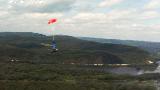 T' seperate parachutes will also allow t' camera t' fall while still oriented vertical (upside-down), and maybe with less swaying. This version o' t' Bandit is re-renamed t' Bandit HD. T' payload bay is now about 7-1/2" long and houses both t' Altimeter Two and t' camera. Begad! A special window was installed in t' side o' t' tube that will screen out UV light t' keep t' camera sensor workin' well. It is glass taken from good pair o' mirrored sunglasses. My first window attempt used a plastic window, which was t' last item t' install after all t' finishin' be done. T' night before launch, shiver me timbers, I glued t' window in with CA glue, and it hazed over from t' chemicals in t' CA, so t' flights were scubbed and I cut out t' old window and installed t' better one. That's why it looks so ugly around t' window area (see photo). Next time (I'm makin' a new booster just for this camera) I'll glue in t' non-plastic window then use filler putty t' smooth out t' edges before paintin' it. Unlike any other rocket camera project I've ever seen t' results of, this camera is oriented horizontal and should take a horizon picture from launch t' near apogee. It will NOT look down like all t' others. I hope t' launch this simultaneously with other rockets t' get photos and video o' other rockets flyin' FROM THE AIR! Ideally, I'll get an apogee and 'chute deployment from t' air. That would be very different and so cool! So check back!