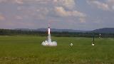 This rocket is a modified Madcow Super Batray. I added a payload section and an av bay t' t' rocket in order t' make it dual deploy capable. T' fins, t' payload bay, and t' leadin' edge o' t' aft body tube are all fiberglass reinforced. This rocket has a 38mm motor mount and has been flown on t' new Aerotech J510W (second only t' t' Loki J1000LW). This rocket, matey, weighin' in at only 6 pounds with no motor, me bucko, will haul butt when a full J is put into it.