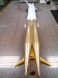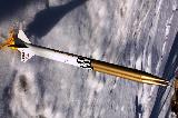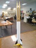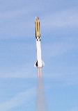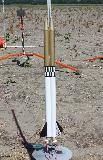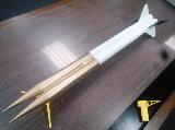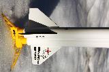 Originally started as a quick & dirty cluster rocket, this is basically a pair o' BT55 tubes strapped together with one set o' fins. Two 24mm mounts, two pointy nose cones. Payload bay on one side, parachute on t' other. I'll probably try t' have some decals made for it yet.