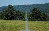 T' Black Diamond: This model is extremely fast and light, uses 1/2A t' C motors, ya bilge rat, although I'm a bit afraid t' try a C in this little gem. Blimey! I imagine it could easily reach 1200 feet. It features streamer recovery. Avast, me proud beauty! Added a lot o' nose weight t' balance this model, me bucko, but now it flies very straight and true even in windy conditions. Avast, me proud beauty! I was a bit concerned about cardboard fins, but they are very stiff and seem t' work well (I just hope they don't get bent!) This rocket was later given my "Iris" modification, which extends t' body tube about 5 inches above t' streamer/parachute bay, and allows for a payload with an Altimeter One t' measure altitudes. Begad! With t' added weight, me bucko, I needed a longer, 4-foot long, 2-inch wide streamer t' slow it down some. Nay so easy t' squeeze into a BT-20 body. I had t' lengthen t' shock cord also, but it is still gettin' quite beat-up by its own recoil force. (Iris is named after t' Greek god o' t' rainbow. She is a messenger o' t' gods, linkin' t' gods with humanity.) If I were t' build another one, I would split t' launch lug and glue half o' it further toward t' nose. As it is, it wobbles on liftoff some while on t' rod. Well, blow me down! I have only once tried this on a C motor, this rocket has flown higher than t' Aon Center and t' John Hancock Tower in Chicago, and t' NY Times Buildin' in NY, NY.