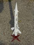 I built this model for scale compatition which means that t' steerin' fin piviots have been moved up unto t' nose cone where they belong.