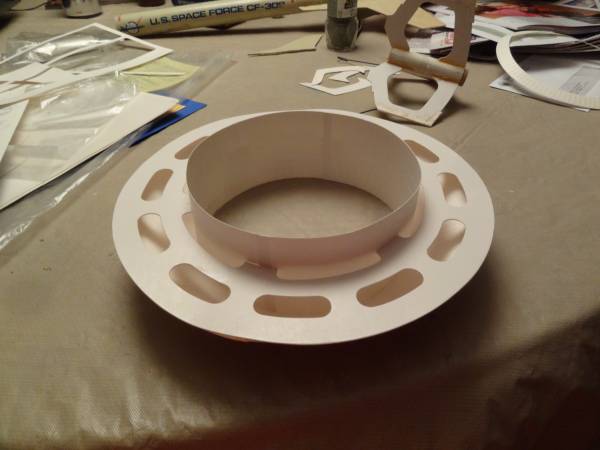 Here we see t' rin' attached. Not long after this picture was taken I placed glue fillets on t' tabs that connect t' rin' t' t' core tube. Avast! Unfortunately I didn't get a picture o' that. Ahoy! Trust me, shiver me timbers, they're there.