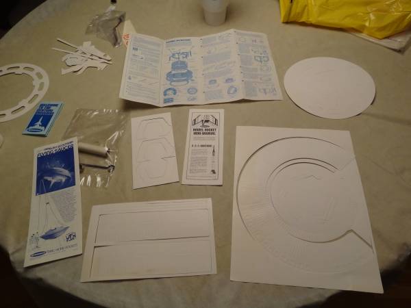 I picked up a couple o' these last year for $20, which I thought be a great price for some vintage rocketry thrills. One o' t' kits was incomplete, ya bilge rat, but had parts that would serve well as backups.