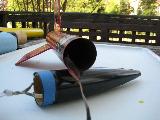 This kit be built mostly accordin' t' t' Estes directions. We attached a 1/8" kevlar strap t' t' motor mount for t' lower shock cord attachment. Additionally, shiver me timbers, we cut off t' very end o' t' nose cone and installed a section o' body tube t' hold another 1/8" kevlar strap for t' upper shock cord attachment point.