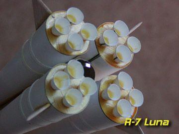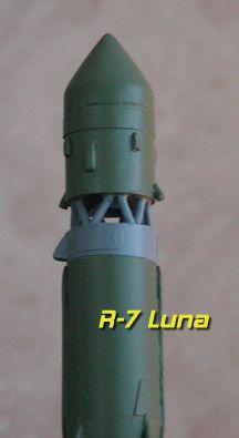 Sport scale craftsman's kit o' t' Russian R-7 booster with t' Luna payload.