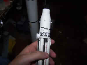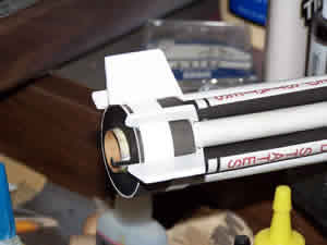 Also, in a fit o' idiocy. Ya scallywag! I went ahead and installed t' lower tube before installin' t' tanks. Ahoy! This posed a problem later on but was nay insurmountable. Arrr! Aye aye! T' install t' tube, I just sanded t' rings a bit and then swabbed some white glue t' t' inside o' t' tube. Avast! T' motor mount be slid in until t' aft rin' was flush with t' end o' the tube.