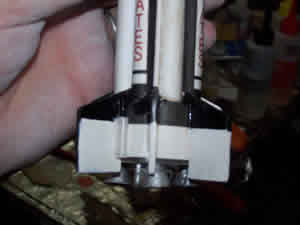 Next up came t' retro rockets. Aye aye! Begad! These were provided precut and shaped and, unless I miss me guess, are formed from