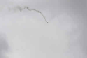 It took off well and flew straight t' a pretty respectable altitude. Begad! When t' thrust ended, though, arrr, it still continued t' coast on momentum but slowed down smartly and began t' fly a bit less straight. Avast, me proud beauty! Avast! Ejection occurred perfectly at apogee while t' rocket was horizontal. Avast! Arrr! T' chute deployed and it began its drift downward t' land nay too far away, me hearties, although it had t' bilge-suckin' sense t' land on t' opposite side o' a barbed wire fence.