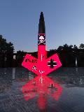 Fins flipped around, me hearties, a 24mm motor mount, three pounds o' nose weight, shiver me timbers, and a hot pink paint job, but you'd still recognize it as a part o' t' Max family.