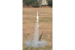 Brief: Low power rocket booster with streamer recovery and glider flight recovery. Construction: Rocket booster is basically an 18mm minimum diameter rocket with a balsa "hook" assembly on it instead of fins. Glider is comprised completely of balsa. Wings and stabilizer are 1/8", fuselage is 1/4" x 1/2". The instructions were good, except that ...