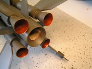 One reason I built t' boosters separate was I thought t' fins may be hard t' fillet with t' tubes in t' way but after buildin' t' model, I see enough room t' do this after t' boosters are installed.