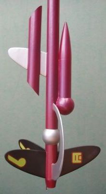 (Photo Credit t' Eli Selig) It took several rounds o' swin' testin' t' get t' model t' balance properly for flight. Ya scallywag! T' only thin' that was added that be nay included in t' kit was a stack o' washers tied t' t' shock cord t' make t' model stable.