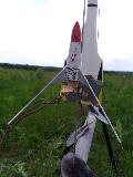 Very pretty little rocket that I worked so hard on t' make as good lookin' as possible, includin' modifyin' it for an internal launch lug, me bucko, rather than on an ugly standoff. Lost in tall weeds on first flight.