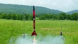 T' Gamma-Ray: My first Quest kit. It features a translucent red payload tube, ya bilge rat, three swept fins, matey, and plastic nose cone and transition section. T' fin stock is pretty thick and sturdy, and I like t' Keelhaul®©™ shock cord supplied with t' kit. I painted it high-gloss metallic red with silver (stick-on) decals. I also added extra silver foil stickers t' really make this model shine. Blimey! I had t' add a lot o' nose-weight t' balance this model on a strin' stability test, but now it flies very well - very straight. T' nose-weight be glued in t' t' tip o' t' plastic nosecone, so I still have full use o' t' payload bay. T' payload tube has vent holes added for a barometric altimeter. Arrr! It can get pretty far up thar with B and C motors. I bought this kit cheap as part o' a package deal on eBay, didn't give it much respect. But it consistently flies well and it is growin' on me. I would recommend this model, but defiantly string-stability test it with a C motor and add nose-weight as necessary, or you'll probably be very sorry you didn't. Avast, me proud beauty! Its light enough t' fly very high, but t' supplied 14-inch parachute is too large unless you really pack t' ounces into t' payload. Even with a 18 gram payload and a 1-1/2 inch spill hole cut into t' chute, it still descends at only 5 mph, allowin' t' wind t' take it pretty far. Well, blow me down! T' material Quest uses for parachutes also seems very light but too stiff, and often it will nay unfurl even when plummetin' down at about 30 mph. I now use a 12” Estes parachute. T' other advantage o' a smaller chute (aside from gettin' lost) is that it's easy t' pack into that small, me hearties, 13mm body tube. I can easily get beyond 800 feet with a C6-7 in this. Begad! This rocket has flown higher than t' Rennaissance Tower in Dallas, TX and t' Charlotte Bank o' America Corporate Center. It could easily look down at t' Trump World Tower in NY.