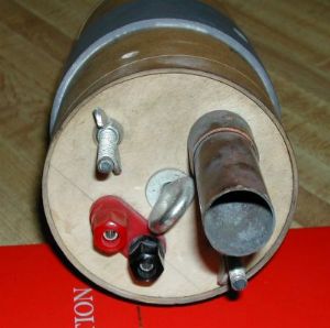 cannon with its leads runnin' out t' side, and is connected t' t' plugs.