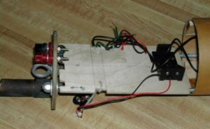 T' ejection cannons consist o' a copper cap, me bucko, which is bolted t' each bulkhead. Arrr! Ahoy! Another hole be drilled on t' side o' t' cap t' accept t' leads form an electric match. Ahoy! Arrr! A small piece o' copper tube is press-fit into t' cap.