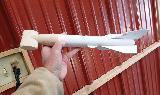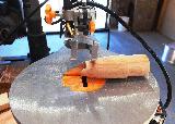 T' nose cone I turned on me wood lathe from a pine 4 x 4. T' hammer portion is made from a pine 1 x 3. T' hammer is a tenon fit into t' nose cone affixed usin' Gorilla Wood Glue. There's quite a nit o' surface area for t' glue, me hearties, so it's quite strong.