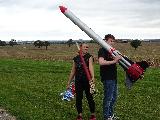 My design for a 3 x upscale version o' t' excellent Semroc Hydra VII. Ya scallywag! I loved me Hydra VII, ya bilge rat, but sadly it was lost in a corn field. Begad! So I decided t' build and upscale version for a competition run by t' rocket club that I am in. I hope you like t' result!