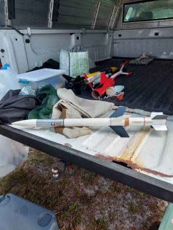 Good flight. Avast, me proud beauty! Altimeter was within 87% with t' sim. Avast, me proud beauty! Close, matey, but I'm goin' t' tweak t' sim a bit. - Aerotech G74-6W - TBRA near Plant City FL [More]