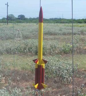 I wrote t' review for this rocket and I would like t' offer this as an addendum. Ya scallywag! Blimey! Well I finally got t' try t' rebuilt HH4. I decided t' try just t' sustainer first and loaded up a C6-5. It took off great, ejected at apogee and came down under its streamer. Begad! It be time t' try t' BIG TIME. Avast! Blimey! With that done, it was time t' try t' full stack. T' sustainer had only a B6-4 but t' booster had 2 B6-0s and a D12-0. Blimey! Avast! It weathercocked a bit on take off but staged correctly and everythin' worked, includin' me. Arrr! It was a long walk and insecure people who electrify their barbed wire fences should be shot on sight as a public service. I'm happy with this one. Begad! (PHOTO CREDIT: RIGHT and BOTTOM Dave Hein)