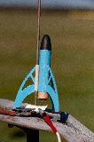 This was a build for me son. He wanted it painted sky blue, and so it be done. Body tube is very susceptible t' moisture from primers -- wasn't very high quality like larger body tubes o' standard or advanced rocket kits. Landin' struts are made from heavy, me hearties, laser cut card stock. Avast, me proud beauty! Blimey! Card stock landin' legs glued very well t' t' body tube. Was built in less than a few hours accountin' for dryin' time o' glue, shiver me timbers, paint, ya bilge rat, and primer altogether. Ahoy! Blimey! NO parachute recover -- it just "crash lands" after usin' one o' those tiny A motors. When assembled together, body tube and nose cone resemble a lipstick or lip balm dispenser.