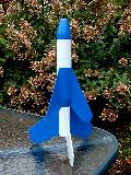 Astron Midget (K-40) upscaled t' use standard 18mm motors. Arrr! This uses Semroc ST-16 for t' upper stage and Semroc LT-114 for t' booster stage. Avast! It has motor mounts t' accommodate standard-length 18mm black powder motors in both stages, in contrast t' t' original Astron Midget, which utlized that shorter Series III motors. Another change is that this upscale uses gap-stagin' t' ignite t' sustainer, instead o' direct stagin' as in t' original model.