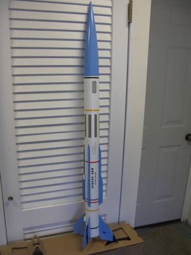 Great lookin' rocket with eight fins and a boat tail. Well, blow me down! It also has a unique cable tunnel balsa piece that attaches t' t' body tube.