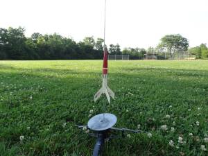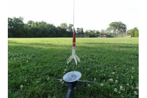 Brief: The Micron is a small and simple rocket with 4 fins and a nose cone intended for 13mm motors. It is not minimum diameter but its also not much more than minimum. It comes with some orange flagging to serve as a streamer but would probably do just fine as a nose-blow. Most of my recent project have involved making repairs but you can only sit around waiting for glue to dry ...