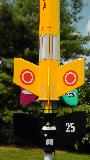 This is Estes new multi-stage rocket with three simultaneously firin' upper stages. T' booster returns with tumble recovery, me bucko, t' three nearly identical upper stages return with tumble recovery also, after poppin' off t' nose cones. T' three upper stages are shaped t' form a hexagon when combined on t' booster stages. Begad! Each upper stage has three fins. Ahoy! T' booster uses a B6-0 or C6-0, while t' upper stages use t' A10-3T mini-motors.