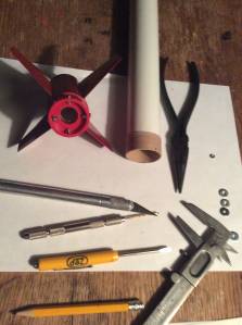 Okay, ya bilge rat, here is another area where I will put me own spin on this build in hopes o' makin' this rocket easy t' repair in t' event that t' rocket's lower body tube becomes damaged. I will use a strip o' Body Tube glued around bottom o' t' main body tube t' reinforce t' area where screws will penetrate through the lower Body Tube wall and will hold t' fin unit in place.