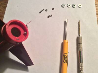 Here is an inside view o' 2 o' t' 4 screws that will hold t' fin unit in place. Used a pin vise t' drill holes, nuts will be cemented t' inside o' shoulder. Just somethin' different, functional, and a bit Fun !