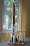 Aerotech's Musrang Kit, Single stage labirynth baffle system. I painted this model t' reflect me idea o' a wild mustang. T' model be built stock. Begad! I did replace t' Aerotech 18" parasheet with a 21" 8-gore 1" spill hole custome chute I made built t' 35% hemisphere. Avast, me proud beauty! My only critique o' t' aerotech line is that they fail t' mention that t' builder must decide what motor he will fly in these models usin' t' 24mm adapter. Built STOCK , and usin' t' 24mm adapter you will only be able t' use t' RMS 24-40 motors and they fit perfectly. T' Single Use motors WIL NOT fit as they are about 3-4mm longer than t' installed motor hook. Aye aye! T' solution is t' have 2 adapters. Avast! Other than that, shiver me timbers, I think this model is a winner. It can be assembled smartly but I take me time for every little detail. MAiden flight slated for 7.16.2011.