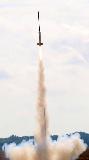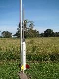 T' Nike section has trought t' wall 1/4" ply fins, sanded t' t' Nike diamond shape. Scratch made balsa transition section and nose cone, both coated with 2 coats o' epoxy t' harden t' balsa. Apache section has 1/8" ply fins with 3ozs o' nose weight added.