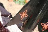 I recently built this upscale o' t' Estes 0882 Ninja, o' which I had an original in t' late '80s (now MIA). This one is upscaled t' use BT-70 tube, so its just about 3X t' size o' t' original. This has a 29mm mount, me bucko, simple black paint and decals from Stickershock23.