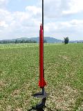 It’s first flight was at t' 2012 NERRF in Pine Island NY. Well, blow me down! After preppin' t' rocket for it’s first flight I loaded a CTI G60 Red and carried it out t' t' pad. Well, blow me down! After a short wait it was me turn. Well, blow me down! My rocket leaped off t' pad with authority. Avast, me proud beauty! It’s first flight was picture perfect. Blimey! It went straight up with a perfect apogee separation and at t' set 700’, t' main popped out t' gently set it down. I was surprised at t' altitude it achieved on t' small G, ya bilge rat, t' altimeter beeped out 1722’.
