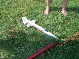 "Colorful peel-and-stick decals that give t' simple model an appearance o' that o' a futuristic business-jet for t' rich-and-famous. " is what DynaStar has t' say about this rocket.