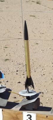 This is a basic single stage, four fin, plastic nosecone rocket. It is a ready to fly kit with minimal assembly which is to attach the parachute and you're done. A pretty basic rocket using standard B and C 18mm rocket engines. Estes item/kit number 002457. The rocket out of the box has two tubes that go together at a coupler joint which is also the separation point for the parachute ...