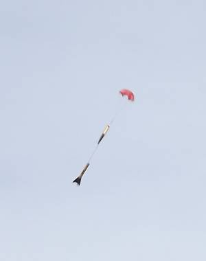 This is a basic single stage, four fin, plastic nosecone rocket. It is a ready to fly kit with minimal assembly which is to attach the parachute and you're done. A pretty basic rocket using standard B and C 18mm rocket engines. Estes item/kit number 002457. The rocket out of the box has two tubes that go together at a coupler joint which is also the separation point for the parachute ...